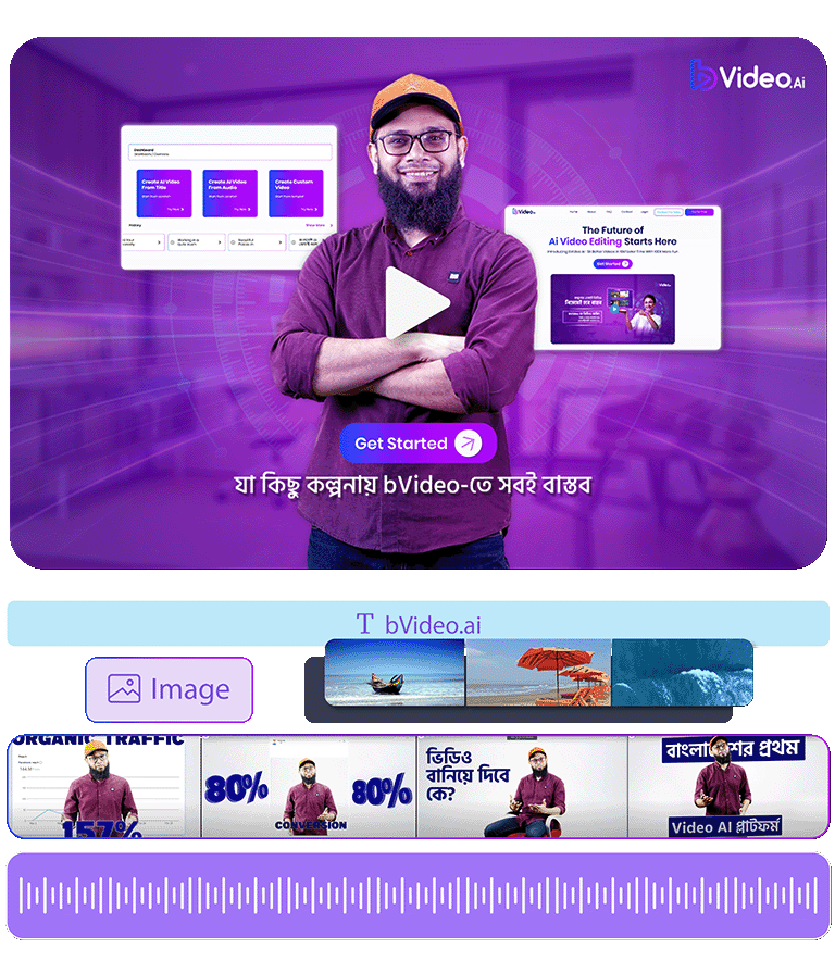 Create the video you envision, just from the title. Whatever you’re thinking can now turn into an exciting video, thanks to bVideo.