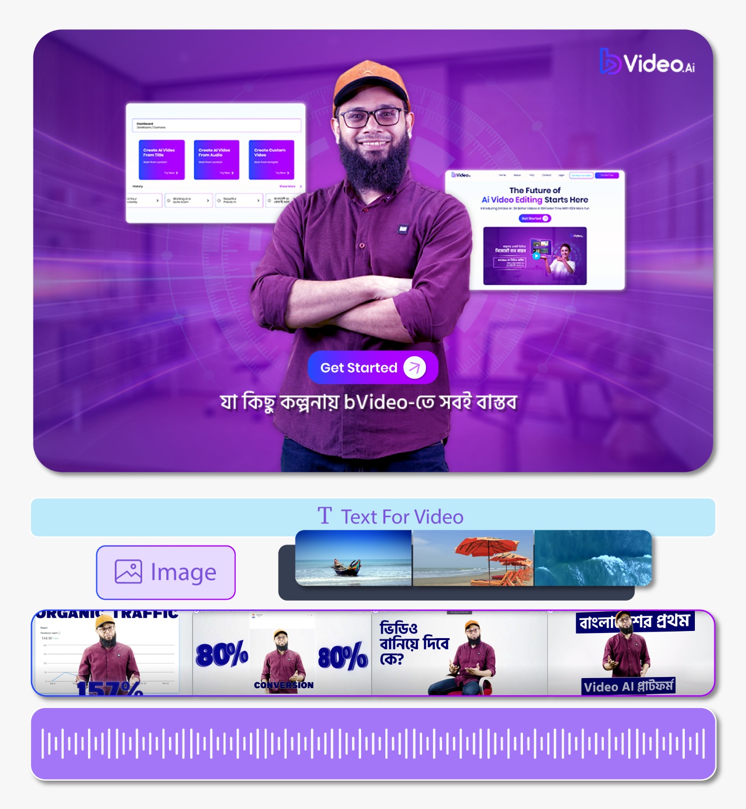 Reels, shorts, or long videos- any videos can now be created in the blink of an eye. bVideo provides an easy solution for creating video content for platforms like Facebook, Instagram, and YouTube.
